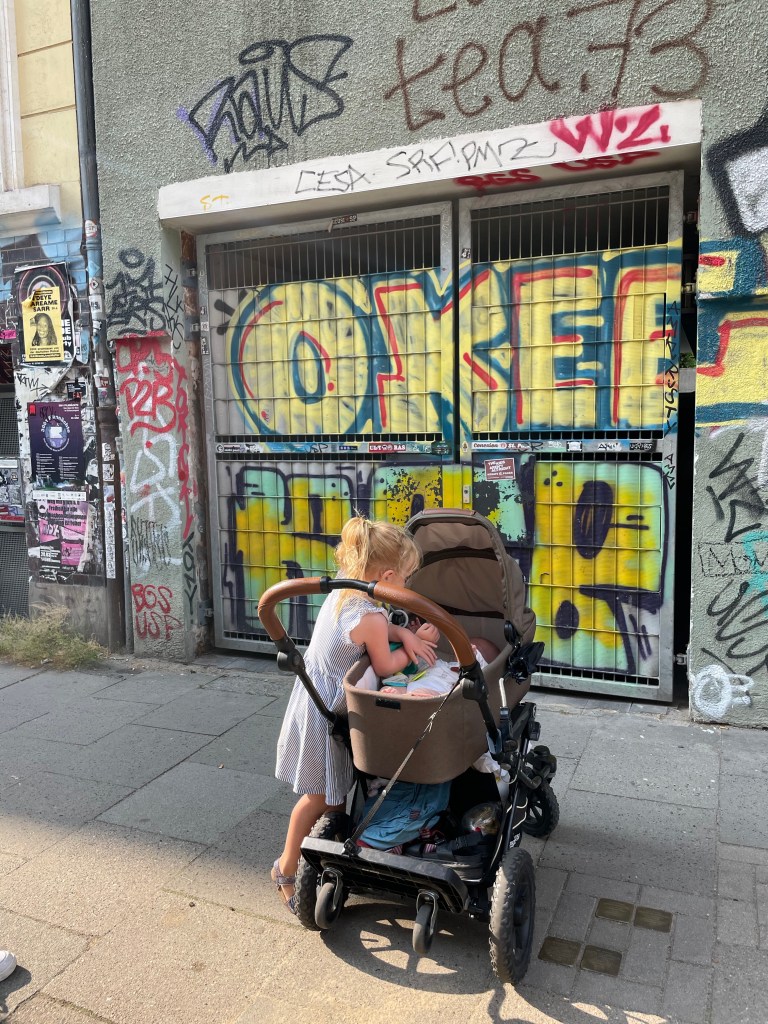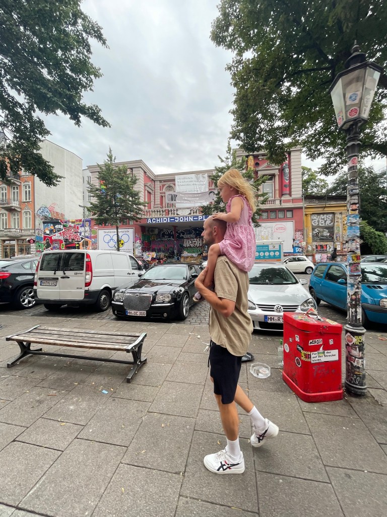 Vi forsøgte på ikke at lave for mange planer for dagen, altså mest bare gå rundt og tage en masse pauser på cafeer, eller finde en legeplads og koble af der. Vores datter på 4 år er god til at gå langt, men med de mange indtryk og uvisheden om hvor længe hun skulle gå, resulterede i at hun sad rigtig meget på Anders’ skuldre. Vi har efterhånden lært at skrue ambitionsniveauet ned, og indset at vi ikke kan se alle attraktioner på en ferie, så er der også undskyldning for at komme tilbage.