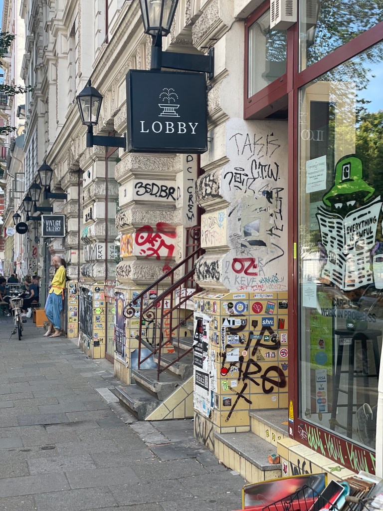 Hotellet vi valgte blev Budapester Hof Hotel i bydelen St Pauli, som er på den højre side af floden Elben, en meget central del af Hamborgs bymidte. Området er præget af at have masser af cafeer, restauranter, de fleste dækket af grafitti, og eftersigende et ret lidt vildt natteliv med deres eget Red Light District. Vi valgte dog det her område fordi vi gerne ville være tæt på bydelen Sternshanze. En bydel som også er præget af grafitti, især det forhenværende teater Rote Flora, der er et symbol på venstreorienteret aktivisme. Derudover finder man en masse retro og genbrugsbutikker, og gaderne er enorm stemningsfyldte og smukke.